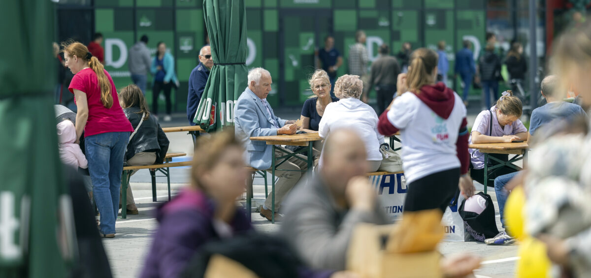 Dla uczestników przygotowaliśmy rozbudowaną strefę gastronomiczną — ze słodkimi przekąskami, grillem i strefami odpoczynku. Całość była spójna wizualnie i funkcjonalnie, co przełożyło się na świetne doświadczenie uczestników i płynne zarządzanie ruchem na terenie.